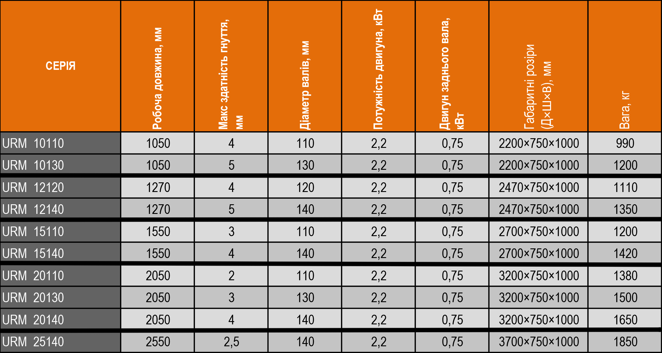 - Стальні валки із високою міцністю на розтяг у відповідності із SAE 1050;