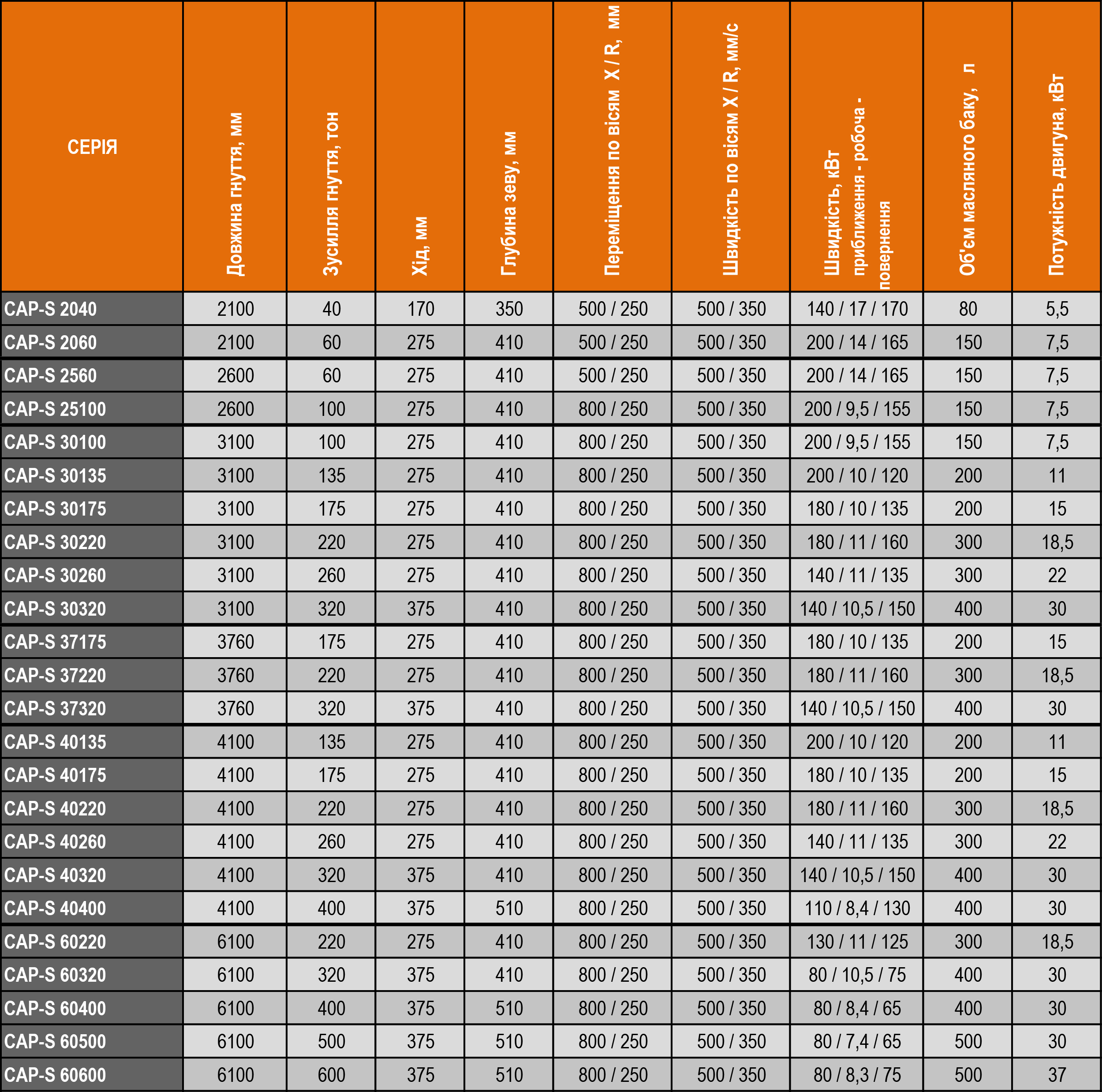 Гідравлічний листогин UZMA серії CAP Standard