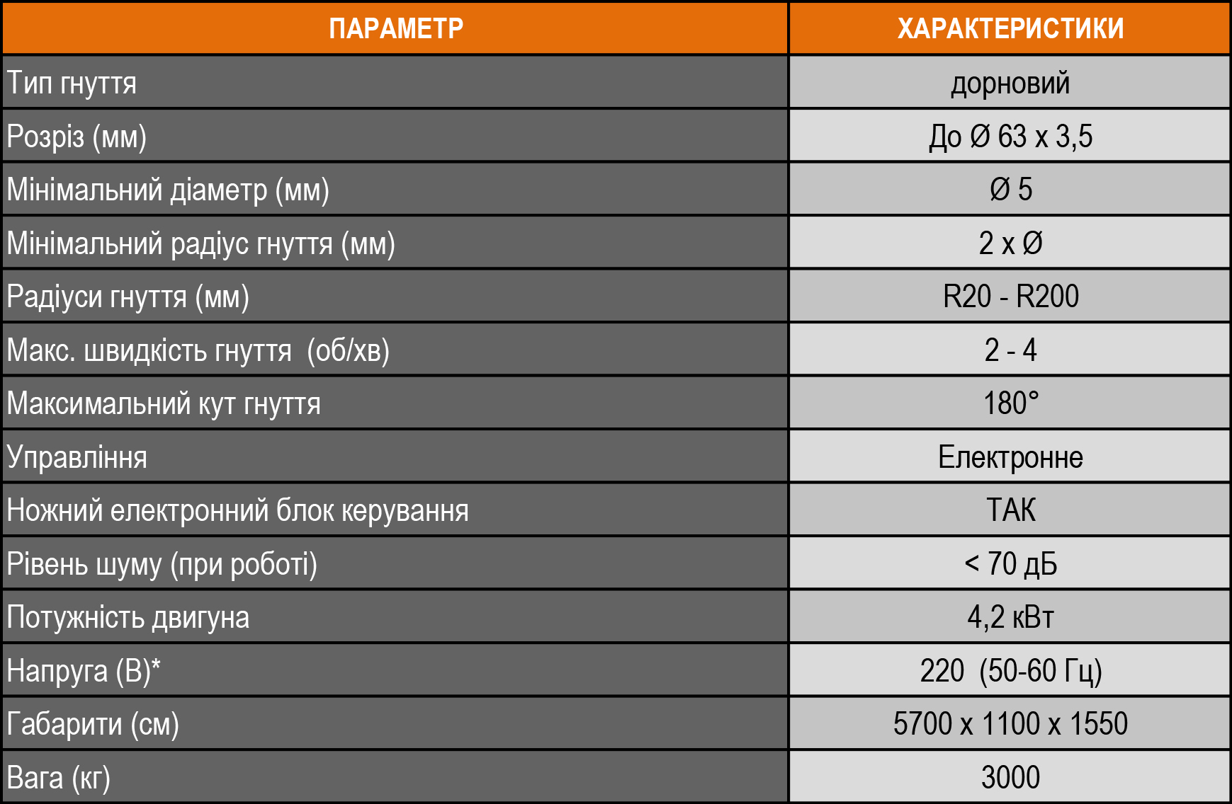 В конструкції верстата реалізований більш ніж 40-річний досвід фірми Ercolina в області холодного згинання металу. Верстат може виконувати якісні загини з радіусом по осьовій лінії від півтора діаметрів труби. Настільки малі радіуси загину досягаються завдяки наявності бустера і автоматичному приводу по осях руху каретки і дорна. На верстат за запитом замовника може встановлюватися автоматична система подачі розпорошеного масла в зону гнуття.