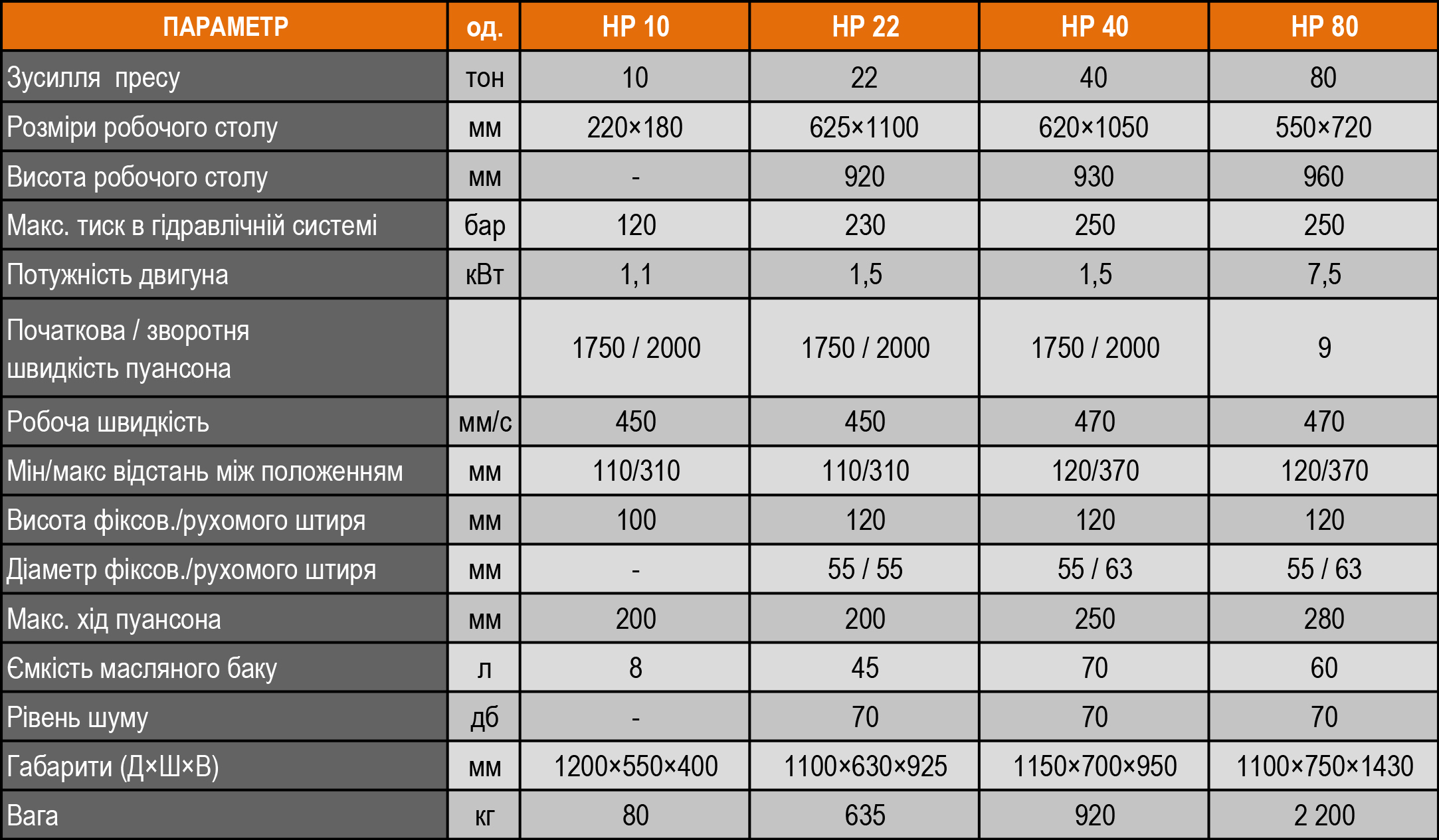 Доступні моделі: HP-10; HP-22; HP-40; HP-80.