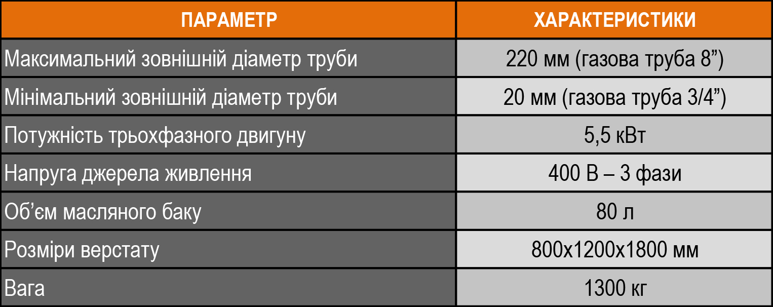 - 220 мм – максимальний діаметр обробки (8 ″);