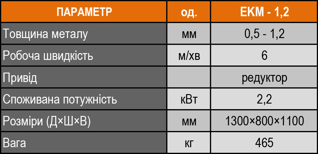 Фальцепрокатний верстат серії EKM призначений для прокатки: